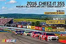 An advertisement for the 2016 Cheez-It at The Glen, made by NBC.