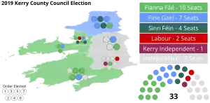 An election to all 33 seats on Kerry County Council was held on 24 May 2019 as part of the 2019 Irish local elections. County Kerry was divided into 6 local electoral areas (LEAs) to elect councillors for a five-year term of office on the electoral system of proportional representation by means of the single transferable vote (PR-STV).