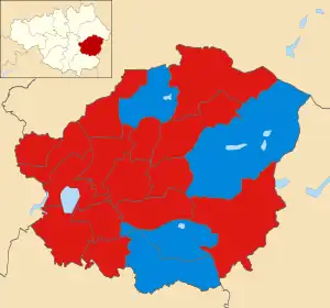 Since its creation in 1974, Tameside has always been under Labour control, aside from 1978 to 1982 when the Conservatives held a majority.[2] In the most recent election in 2021, Labour lost one seat to the Conservatives, but increased their vote share by 4.6%, winning a total of 16 seats, with the Conservatives gaining 10.7% and winning 3 seats. The Green Party of England and Wales did not gain any seats, despite winning their first seat in 2019.[3]