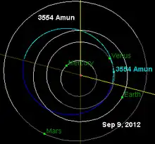 ![]() Orbit diagram of asteroid Amun with location as of September 9, 2012  | |