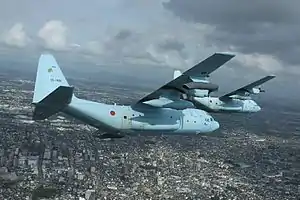 One aircraft participated in December 2015 edition of the US Air Force's Operation Christmas Drop in the Pacific, along with one RAAF C-130J and three US C-130s.[17][18][19][20][21] The JASDF and RAAF also participated in the 2016,[22] 2017,[23][24] 2018[25] and 2019[26] operations.