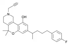 - ↑ Guterman A, Somani P, Bachand RT (1979). "Phase-I evaluation of 5-5-dimethyl-10-hydroxy-8-[5-(4-fluorophenyl)-2-pentyl]-2-(2-propynyl-1, 2, 3, 4-tetrahydro-5h-[1] benzopyrano [3, 4-d] pyridine (a-41988)-novel benzopyran derivative". Clinical Pharmacology and Therapeutics. 25: 227.