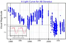 - 1 2 3 Innis, J. L.; et al. (May 2008), "Recent CCD Photometry of AB Dor, and a Comment on the Long-term Activity Cycle", Information Bulletin on Variable Stars, 5832 (5832): 1, Bibcode:2008IBVS.5832....1I.