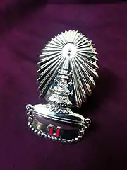 The academic dress of Chulalongkorn University (Thai: ครุยวิทยฐานะของจุฬาลงกรณ์มหาวิทยาลัย) in Thailand is a long-sleeved gown made from light mesh, faced and bordered with a specially designed felt strip. The same strip is also attached to elbows and wrists. The gown itself is adapted from the ceremonial attire called khrui, traditionally worn by government executives and peers to reflect their status. The gown and the academic badge were devised during Prajadhipok's reign.[1][2]