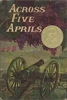 Across Five Aprils is a novel by Irene Hunt, published in 1964 and winner of a 1965 Newbery Honor, set in the Civil War era.[2][3] Hunt was close to her grandfather who told her stories from his youth, which she incorporated into Across Five Aprils.[4] Across Five Aprils is often considered the first novel of the Young Adult genre.