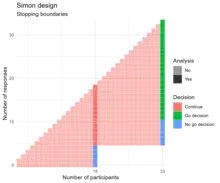 Group sequential design is the application of sequential analysis to clinical trials. At each interim analysis, investigators will use the current data to decide whether the trial should either stop or should continue to recruit more participants. The trial might stop either because the evidence that the treatment is working is strong ("stopping for benefit") or weak ("stopping for futility"). Whether a trial may stop for futility only, benefit only, or either, is stated in advance. A design has "binding stopping rules" when the trial must stop when a particular threshold of (either strong or weak) evidence is crossed at a particular interim analysis. Otherwise it has "non-binding stopping rules", in which case other information can be taken into account, for example safety data. The number of interim analyses is specified in advance, and can be anything from a single interim analysis (a "two-stage" design") to an interim analysis after every participant ("continuous monitoring").
