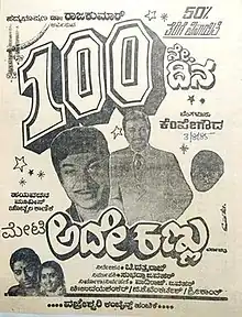 Ade Kannu (transl. Same Eye) is a 1985 Indian Kannada-language psychological thriller film directed by Chi. Dattaraj.[1] It stars Dr. Rajkumar and Gayathri. Dr. Rajkumar appeared in a dual role for the last time in his career, and this was the last movie in which Gayathri appeared in a lead role against Dr. Rajkumar.