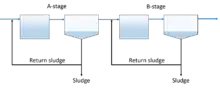 The adsorption/bio-oxidation process (AB process) is a two-stage modification of the activated sludge process used for wastewater treatment. It consists of a high-loaded A-stage and low-loaded B-stage. The process is operated without a primary clarifier, with the A-stage being an open dynamic biological system. Both stages have separate settling tanks and sludge recycling lines, thus maintaining unique microbial communities in both reactors.