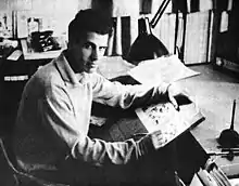 In 1952, upon the suggestion of artists Wally Wood and Joe Orlando,[21] Williamson began working for EC Comics, an influential comic book company with a reputation for quality artists.[22] While at EC, Williamson frequently collaborated with fellow artists Frank Frazetta, Roy Krenkel and Angelo Torres, a group which, along with Nick Meglin and George Woodbridge, became affectionately known as the "Fleagle Gang", named after a notorious criminal gang.[23] Williamson primarily worked on EC's science-fiction comics Weird Science, Weird Fantasy, and Weird Science-Fantasy, illustrating both original stories, primarily by writer Al Feldstein, and adaptations of stories by authors such as Ray Bradbury[24] and Harlan Ellison,[25] but his work occasionally appeared in EC's horror and crime comics as well.
