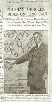 Alan Jenvey Rowe (29 October 1891 – 3 January 1968) was a British archaeologist most famous for his studies on ancient Egypt. Rowe was an Egyptologist and lecturer in Near Eastern Archaeology in Manchester University.[1][2]