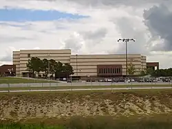 The current headquarters building is the M.B. Sonny Donaldson Administration Building, a two-story facility in unincorporated Harris County, Texas, across from Nimitz High School.[50] The school district acquired the facility in spring 2015 from Baker Hughes and opened it on March 21, 2016, with the dedication ceremony on April 19 of that year. The funds to purchase it came from the general operating budget.[51]