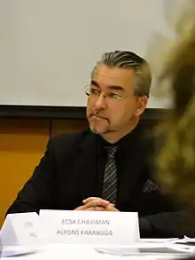 ![]() Alfons Karabuda at the ECSA General Assembly in Reykjavik 2012 | |