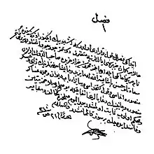 Scan of the first article of the original treaty, written in Ottoman Turkish, signed September 5, 1795 (21 Safar A.H. 1210).;[1]
