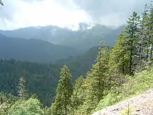 The Alum Cave Trail is the shortest and steepest of the five trails leading to the Le Conte massif, which contains five separate peaks in all, the highest of which has an elevation of 6,593 feet (2,010 m). Because of its short length and scenery (it is often considered Le Conte's most scenic route)[3] it is the most common footpath for hikers seeking to reach the summit of Le Conte.[4]