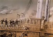 Admiral Courbet on the bridge of the cruiser Volta during the battle of Fuzhou, 23 August 1884