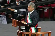Often described as a center-left, progressive, left-wing populist, social democratic, and economic nationalist,[8] López Obrador has been a national politician for over three decades.[9] During his presidency, he has promoted public investment in sectors that had been liberalized under previous administrations and has implemented a number of progressive social reforms. Supporters have praised him for promoting institutional renewal after decades of high inequality and corruption, and refocusing the country's neoliberal consensus towards improving the state of the working class.[10] Critics have claimed that he and his administration stumbled in their response to the COVID-19 pandemic and attempts to deal with drug cartels.[11]