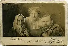 The family was close with the writer Žemaitė. She taught Aleksandra the Lithuanian language.[14] Bulotas and Žemaitė toured Lithuanian communities in the United States and Canada in 1916–1917. Bulotas also took care of Žemaitė during her last months before her death in December 1921.[1] Andrius Bulota published four volumes of collected works of Žemaitė,[13] while Aleksandra translated several short stories to Russian.[20]