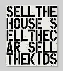 Apocalypse Now is a 1988 painting by the American artist Christopher Wool, widely regarded as among the most important of his "word paintings" created in the late 1980s.[1][2][3] It consists of the words "SELL THE HOUSE SELL THE CAR SELL THE KIDS", stenciled in black, block letters in alkyd enamel[4][5] on an off-white painted aluminum and steel plate measuring 84 x 72 inches (213.4 x 182.9 cm).[4] The quotation is from the 1979 Francis Ford Coppola movie Apocalypse Now, where it is written in a letter mailed home by a character who has lost his mind in the jungle.[1][lower-alpha 1]