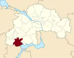 Apostolove Raion (Ukrainian: Апостолівський район) was a raion (district) of Dnipropetrovsk Oblast, southeastern-central Ukraine. Its administrative centre was located at the town of Apostolove. The raion was abolished on 18 July 2020 as part of the administrative reform of Ukraine, which reduced the number of raions of Dnipropetrovsk Oblast to seven. The area of Apostolove Raion was merged into Kryvyi Rih Raion.[1][2] The last estimate of the raion population was 52,509 (2020 est.)[3].