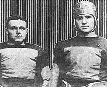 Arnold Horween (right) with his brother Ralph (left) as members of the Harvard Crimson football team, circa 1919.