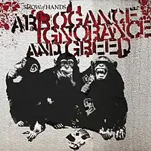 - ↑ "Arrogance Ignorance and Greed - Show of Hands". Archived from the original on 21 November 2015. Retrieved 3 December 2015.