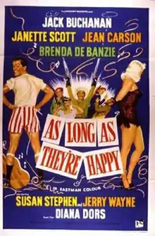 As Long as They're Happy is a 1955 British musical comedy film directed by J. Lee Thompson and starring Jack Buchanan, Susan Stephen and Diana Dors.[1] It is based on the 1953 play of the same name by Vernon Sylvaine. It was shot in Eastmancolor at Pinewood Studios near London with sets designed by the art director Michael Stringer.