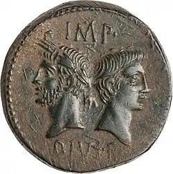 Cantarelli has argued that it is possible that Attica was no longer alive in 32 BC because she is not mentioned by Nepos among those called to her father's deathbed.[21] E. Rapp believed that coins from Nemausus which depict Agrippa with a beard (a sign of public mourning in Roman culture) indicate that she died in 29 BC since the coin celebrates Agrippa's victory over Antony and Cleopatra which was in 30 BC. Reinhold agreed that the coins could be an indication of Agrippa's mourning after a death, but rejected Rapp's dating of them to 29 BC.[10]