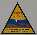 When a wave hits the coast, it can pass over the sandbar that separates the baïne from the sea and enter it all along its length. When the wave subsequently recedes, the baïne water is pushed out through the single point where it was connected to the sea. At this point a rip current, a very strong offshore current, can occur. The current will vary depending on the height of the waves and the height of the tide. It is at its strongest and most dangerous during the final hours approaching low tide, and in the first hours afterwards.[1] Swimmers caught in this current are advised not to resist but to let themselves be carried out to sea where the current is weaker, then to swim parallel to the beach before attempting to approach the shore.[2]