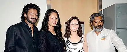 Prabhas was cast as main lead of the film. Anushka Shetty was cast as the lead actress of the film as she was also a part of Mirchi (2013).[38] She coincidentally became the first heroine Rajamouli repeated in his films and thus made her schedules full for 2013 and 2014.[39] Rana Daggubati was cast as the antagonist of the film and coincidentally he was also a part of Rudhramadevi.[40] Sathyaraj signed the film.[41]