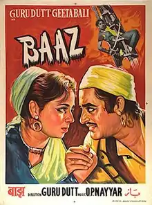 Baaz (lit. 'Falcon') is a 1953 Hindi action film directed by Guru Dutt. This film is Guru Dutt's first starring film, an action film packed with adventure staged mainly on a ship.