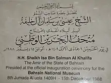 - 1 2 "Bahrain National Museum". Time Out Bahrain. 27 November 2013. Retrieved 28 September 2019.
