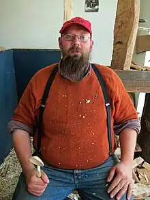 Barnaby Alexander Carder, known as Barn the Spoon (born 1981), is a British artisan spoon carver, teacher, author and co-founder of Spoonfest, the annual international festival of spoon carving in Edale in Derbyshire, UK.[1] He is also founder of the Green Wood Guild, a collective of green wood carvers who run carving workshops[2] and owns a spoon shop and woodworking venue in Hackney in London's East End. Carder also teaches spoon carving, woodworking and bladesmithing (with master smith Nic Westermann).[3]