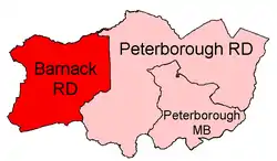 52°37′37″N 0°23′06″W / 52.627°N 0.385°W Barnack was a rural district in the Soke of Peterborough and later Huntingdon and Peterborough from 1894 to 1974.