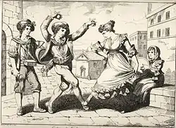 An extremely prolific engraver, his illustrations depicted the costumes of the Italian people, the great epic poems and numerous other subjects, including popular customs. In general, the most recurring subject is Rome, the ancient city as well as the modern one: its inhabitants and its monuments.[2]
