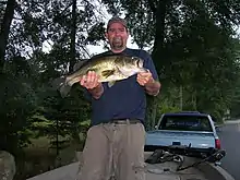 Bass fishing is the recreational fishing activity, typically via rod-based angling, for various game fishes of North America known collectively as black bass.[1] There are numerous black bass species targeted in North America, including largemouth bass (Micropterus salmoides), smallmouth bass (Micropterus dolomieui), spotted bass or Kentucky bass (Micropterus punctulatus), and Guadalupe bass (Micropterus treculii).[2] All black bass species are members of the sunfish family Centrarchidae.