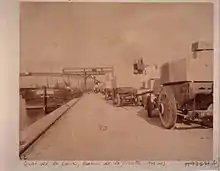 In the late 19th century, commercial activities developed at the basin. In the same period the Moselle footbridge (13 metres high and a span of 85 metres) was built by Armand Moisant.[3][4] It was decorated with a clock 3 metres in diameter. This bridge was replaced in 1966.