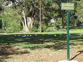 Beaumont Common was an English style Common. Ownership of The Common was originally vested in trust only for those residents living within the Village of Beaumont, that is the bounds of Cooper Place, Beaumont Road (now Glynburn Road), Dashwood Road and Devereaux Road (as if it actually continued due south to Dashwood instead of meandering to the east at West Tce). Originally it was fenced and gated with the key being available only to residents of the Village of Beaumont. The fence and gates were removed in the early 20th century. The trust deed was lodged at the Land Titles Office Adelaide. Trustees remaining on the death of a trustee appointed a successor by unanimous not majority vote. The last trustees included the late Alfred Scammell (of Fauldings) and J B Cleland. They appointed Burnside Council a co-trustee following an undertaking by Council to maintain The Common as an open space public park. As the remaining trustees aged, Burnside Council then attempted many times to instead build on the Common, against the wishes of Beaumont residents. More recently a popular music video "Kachow mode" inspired by Disney Pixar's Cars was filmed partially in the Beaumont Common.[3]