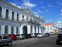 The Antônio Lemos Palace, also known as "Palacete Azul", was designed by José Coelho da Gama e Abreu and built in the second half of the 19th century to house the Municipal Stewardship, thus integrating a select group of 1800's Brazilian buildings that still maintain their original public functions. It is located in Cidade Velha neighborhood, the historic center of the capital of Pará, between Felipe Patroni and D. Pedro II squares. Its construction began in 1860 and was completed in 1885. It predominantly follows the late neoclassical style, also known in Brazil as "Empire style". In addition to the City Hall, it has already housed the Court of Appeals, the Board of Trade, the municipal Council, and the Chamber of Deputies. It was listed as heritage by the National Service of Historic and Artistic Heritage (now IPHAN) in 1942 and, subsequently, by similar state and municipal agencies and institutes.[1][2]