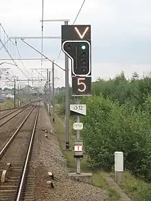 - ↑ On high speed lines, there are minor stop signs raised (on a post)