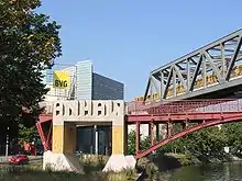 The U1 U-Bahn viaduct above the old railway bridge, near the former Anhalter Bahnhof, crossing over the Landwehrkanal
