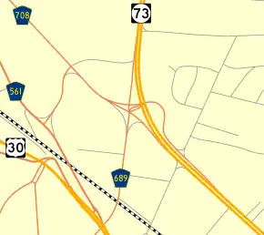The Berlin Circle was a traffic circle in Berlin Township, New Jersey, United States located at the intersection of Route 73, Berlin-Cross Keys Road and Walker Avenue, and which also received traffic from nearby U.S. Route 30, and County Route 561. The New Jersey Department of Transportation (NJDOT) began replacement of the circle in August 2006.[1] The project cost $73 million. The circle was replaced with an at-grade intersection with traffic signals.[2] The project was completed in 2007.