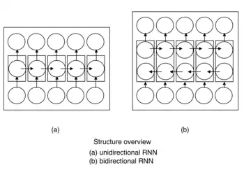Bidirectional recurrent neural networks (BRNN) connect two hidden layers of opposite directions to the same output. With this form of generative deep learning, the output layer can get information from past (backwards) and future (forward) states simultaneously. Invented in 1997 by Schuster and Paliwal,[1] BRNNs were introduced to increase the amount of input information available to the network. For example, multilayer perceptron (MLPs) and time delay neural network (TDNNs) have limitations on the input data flexibility, as they require their input data to be fixed. Standard recurrent neural network (RNNs) also have restrictions as the future input information cannot be reached from the current state. On the contrary, BRNNs do not require their input data to be fixed. Moreover, their future input information is reachable from the current state.[2]