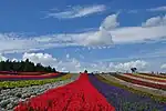 Biei is famous for its views of wide fields and hills, and is used as a backdrop for many Japanese commercials and TV programmes. The bright colours of its fields attract thousands of visitors in July and August.