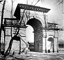 The Birch Gate (Berezoviye Gate, Russian: Берёзовые ворота) is a stone gate located on the eastern border of the Palace Park, the grounds of Gatchina Palace, in Gatchina, Leningrad Oblast, Russia.[1] It is nearby the Birch House (Березовый домик).[2] The facility was built from 1795 to 1798 by Giovanni Visconti according to the design of famous architect Vincenzo Brenna.[3] The Birch Gate is a part of the Historic Centre of Saint Petersburg and Related Groups of Monuments, a UNESCO World Heritage Site.[1]