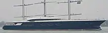 Black Pearl is a sailing yacht launched in 2016, which is 106.7 meters (350.1 ft) in length.[4] It has three DynaRig masts supporting a sail area of 2,900 square meters (31,215 sq ft).[4] The yacht was known during its build process originally as Oceanco Y712 and thereafter as "Project Solar". The hull is steel, the superstructure aluminum, and the masts carbon fiber.[5] The yacht is owned by the family of Russian billionaire Oleg Burlakov, who died in 2021.[1][6][7]