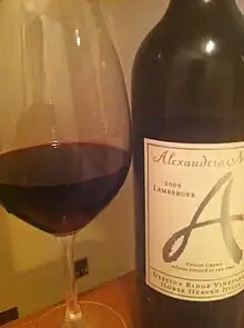 Blaufränkisch (German for blue Frankish) is a dark-skinned variety of grape used for red wine.[1] Blaufränkisch, which is a late-ripening variety, produces red wines which are typically rich in tannin and may exhibit a pronounced spicy character.[2]