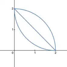 Multiplying this value by to account for the remaining quadrants gives , which agrees with the circumference of a taxicab circle.[8] Now take the Euclidean circle of radius centered at the origin, which is given by . Its arc length in the first quadrant is given by