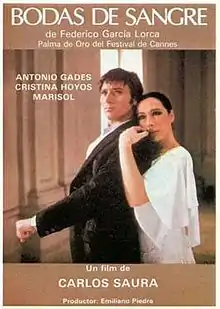 Blood Wedding (Spanish: Bodas de sangre) is a 1981 Spanish musical film written and directed by Carlos Saura. It was directed and choreographed in the flamenco style. It is the first part of Saura's 1980s flamenco trilogy, and is followed by Carmen (1983) and El amor brujo (1986).