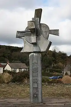 Sloan held a three-person show at the Arts Council of Northern Ireland Gallery in 1974 where he showed drawings and pastels, which one critic labelled as "unresolved and overworked". Fellow exhibitors were Lawson Burch and Vernon Carter.[9] Disappointed by the lack of casting facilities in Northern Ireland, Sloan set-up his own casting facilities in the late 1970s,[10] which he maintained until 1982.[7] Several trips to North America, including visits to the Tenth International Sculpture Conference in Toronto in 1978, the Foundry Workshop, Baltimore in 1980, and the Washington Sculpture Conference in the same year,[11] inspired Sloan to expand his foundry with financial assistance provided by the Arts Council of Northern Ireland. His American excursions also exposed Sloan to new influences in large sculptural works by Nancy Holt, Richard Serra and Mark Di Suvero.[12] Sloan participated in the Ulster Workshop at Documenta 6, Kassel, Germany in 1977, with performance and installation work.[10] In 1979 Sloan debuted with the Independent Artists where he showed two works, an aluminium piece entitled Even Smaller Dancer, and Confined in cast brass. In the following year he showed at the Oireachtas for the first time with Crois Cheilteach.[13]