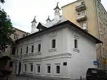 Bolshaya Nikitskaya Street (Russian: Большая Никитская улица, Nikitskaya Ulitsa) is a radial street that runs west from Mokhovaya Street to Garden Ring in Moscow, between Vozdvizhenka Street (south) and Tverskaya Street (north). Central, eastern part of the street is notable for its educational institutions (old Moscow State University and Moscow Conservatory) and theaters, western part beyond the Boulevard Ring has many Neoclassical mansions and competes with nearby Povarskaya Street for the title of Moscow's Embassy Row.